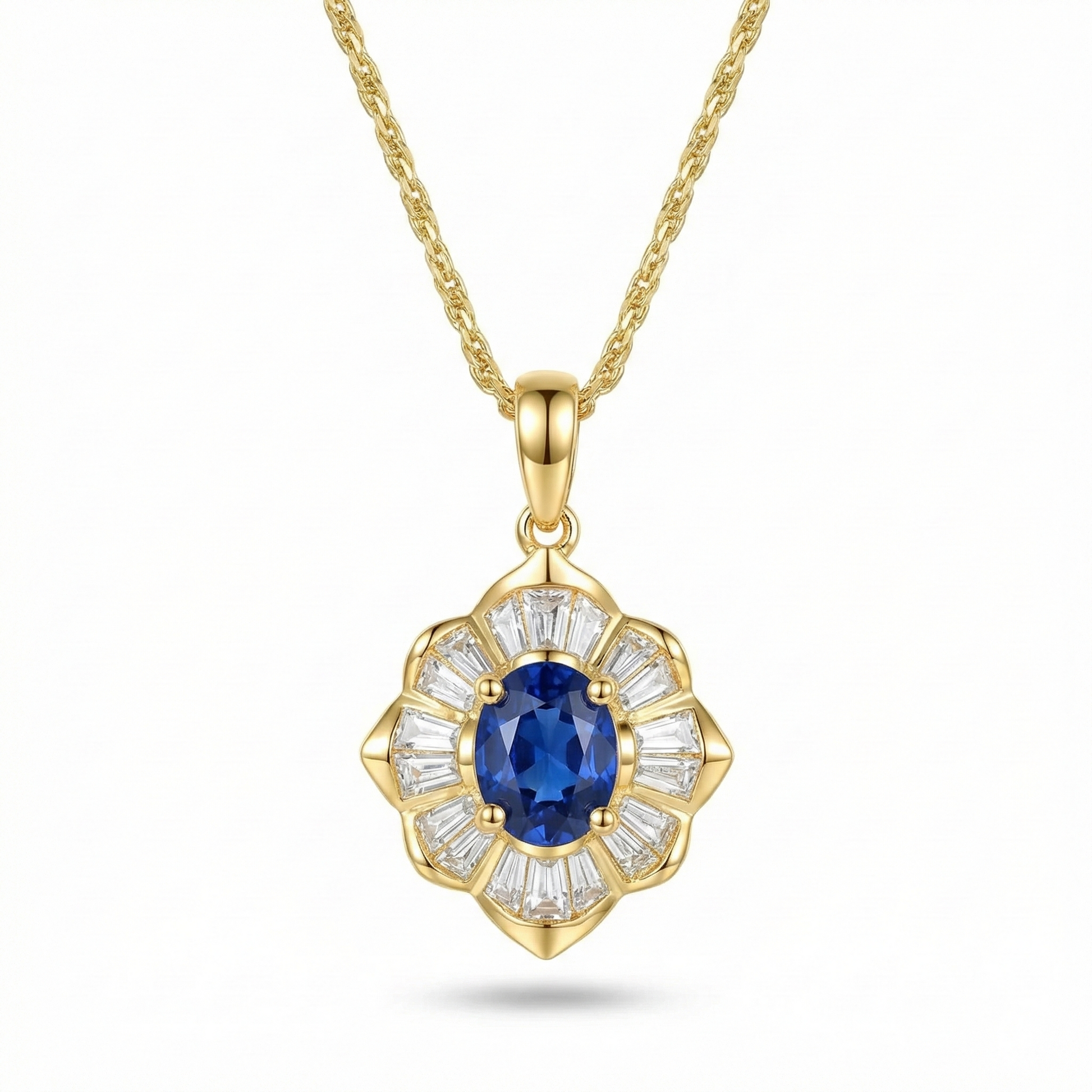 The Kavella Noctazure necklace pairs the warm brilliance of polished gold with the deep allure of a midnight-blue stone. Bold yet refined, it’s a timeless piece that captures the beauty of contrast.